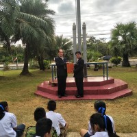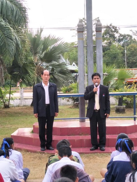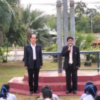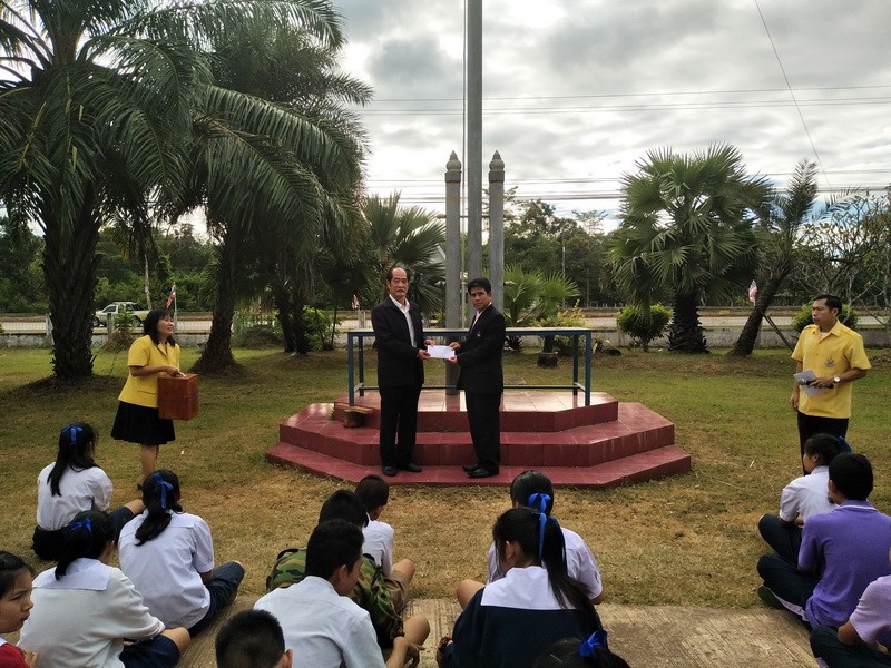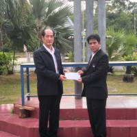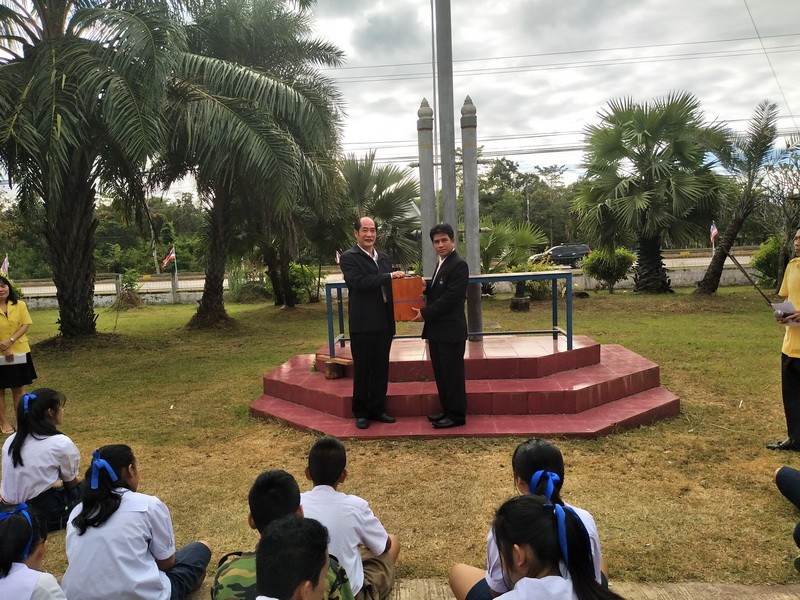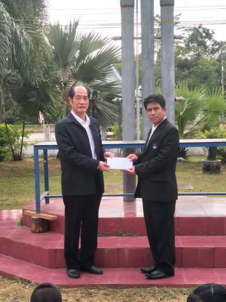 นายศุภชัย สายเย็น ผู้อำนวยการโรงเรียนท่าแร่ศึกษา รับมอบทุนการศึกษาและกล้องจุลทรรศน์ จากคุณนิวัติ ภั